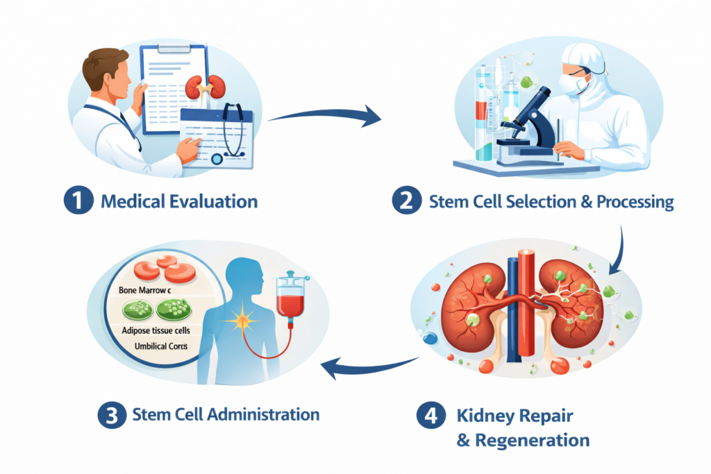 The process begins with a detailed review of medical history, lab reports, and kidney function to determine suitability for stem cell therapy for kidney in India.